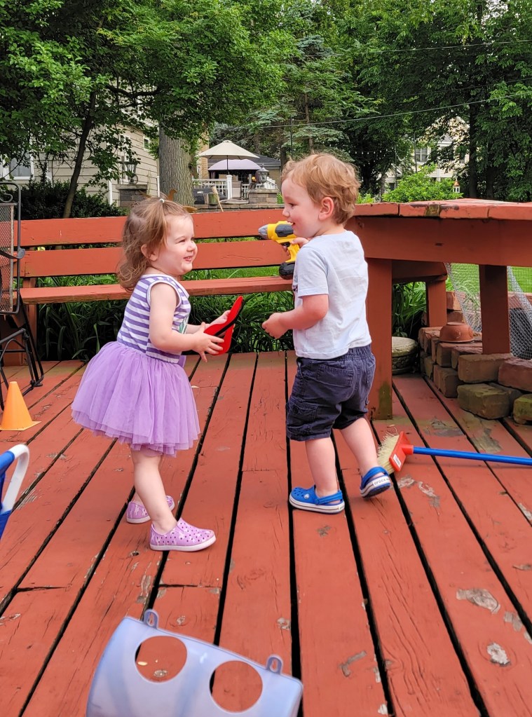 You and Matt’s son, Nathan, hanging out. It’s not a shock he has a toy power tool, hopefully you’ll get to know Matt well enough to understand why. The guy hauled around a sledgehammer in the back of his jeep for like a year, what did he think he would need to spontaneously smash? Anyway, you are betrothed to this young man so please learn to get along.